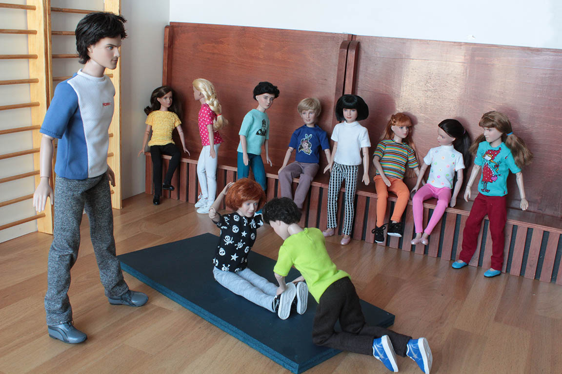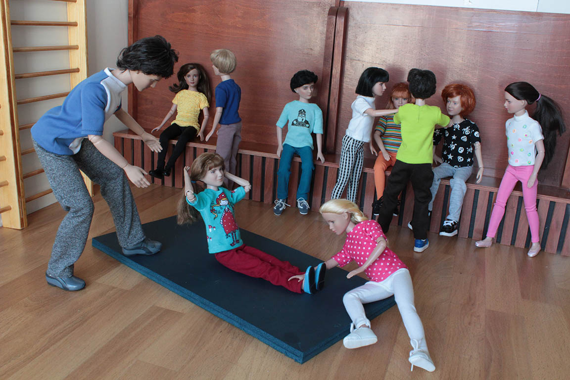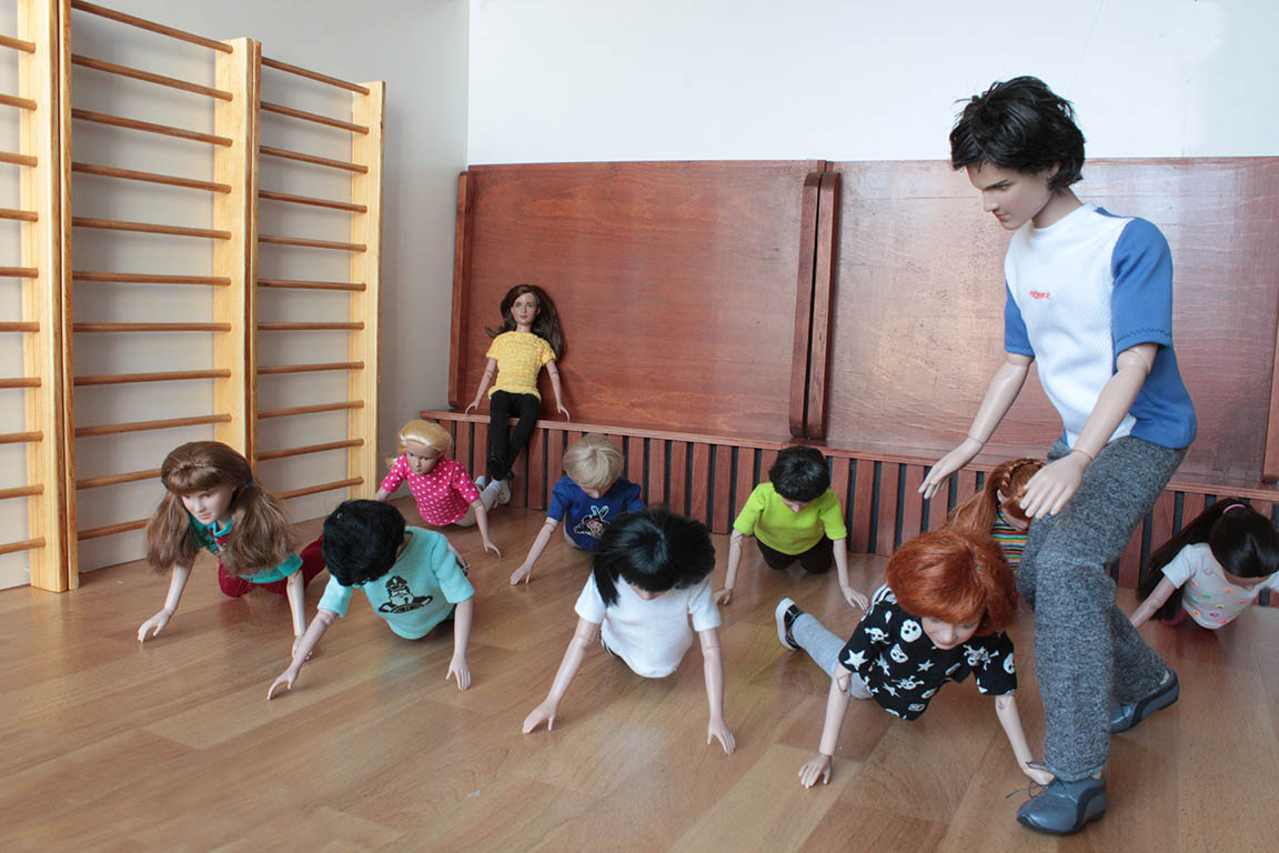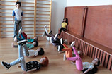 nezúčastní. Ostatní děti začínají krátkou rozcvičkou a pak následují posilovací