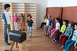 cviky. Potom začnou děti řádit na žebřinách a nakonec přitáhnou kozu, na které