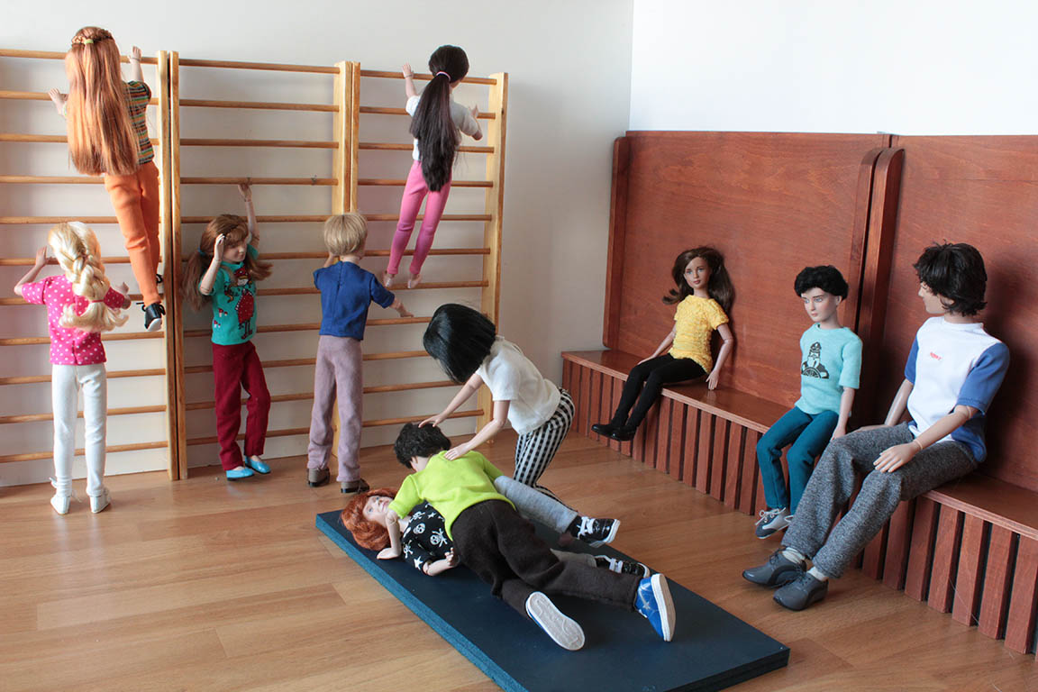 mi posloužila dlouhá lavice (vyráběla jsem jí do scénky s baletkami) a žebřiny.