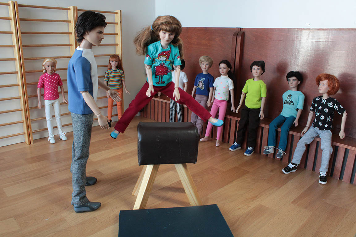 Při akčních záběrech jsou panenky zavěšeny na silonovém vlasci. A protože 12"