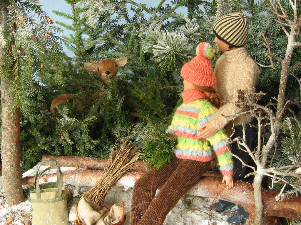 Frantík nosí dobroty lesním obyvatelům i přesto, že letošní zima je mírná a sněhu je málo. Vždyť krmelec i lavici s bedýnkami vyrobil se svým tatínkem docela nedávno. A tak chce mít všechno bohatě naplněné a uspořádané. Navíc laňku Majdu odchoval u nich v hájovně a Frantík je vždy moc rád, když ji zahlédne. Johanka je jeho kamarádka z dětství, miluje les a vlastně tak trochu i Frantíka. Tihle dva mají vše hotovo raz dva, a tak před zpáteční cestou ještě nasbírají šišky a nějaké chrastí pro babičku na zátop ( …a pak že je ta dnešní mládež líná!). Johanka nezapomněla ani na chvojovou kytici. Cestou domů opět chvíli tiše pozorují Majdu a pak už spěchají, protože začíná pořádně chumelit.