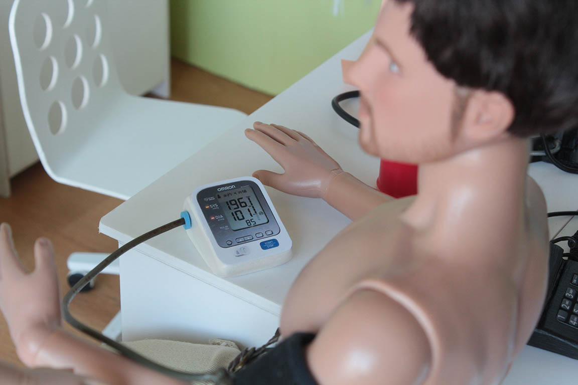 a zkouší opakovaně měření. Nakonec ale doktorka konstatuje, že je mladý