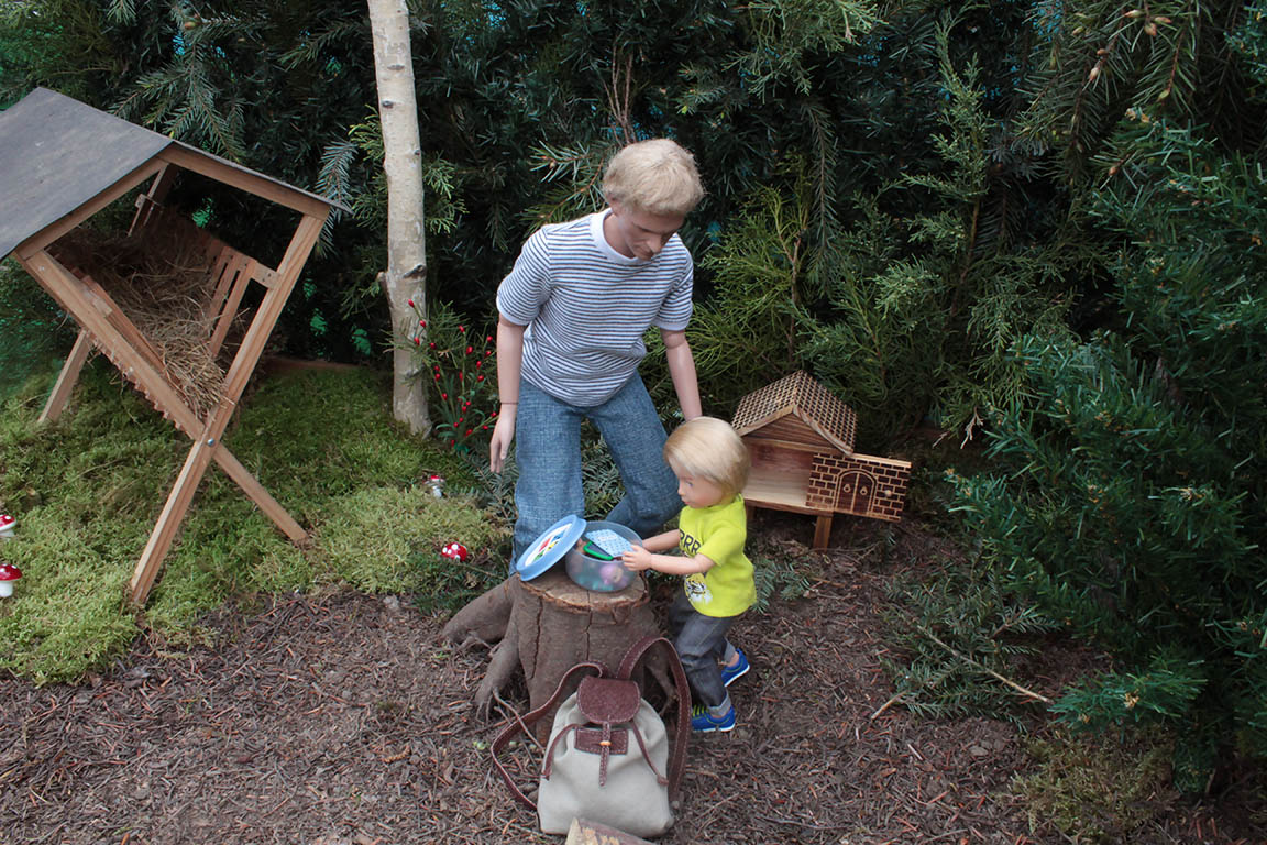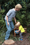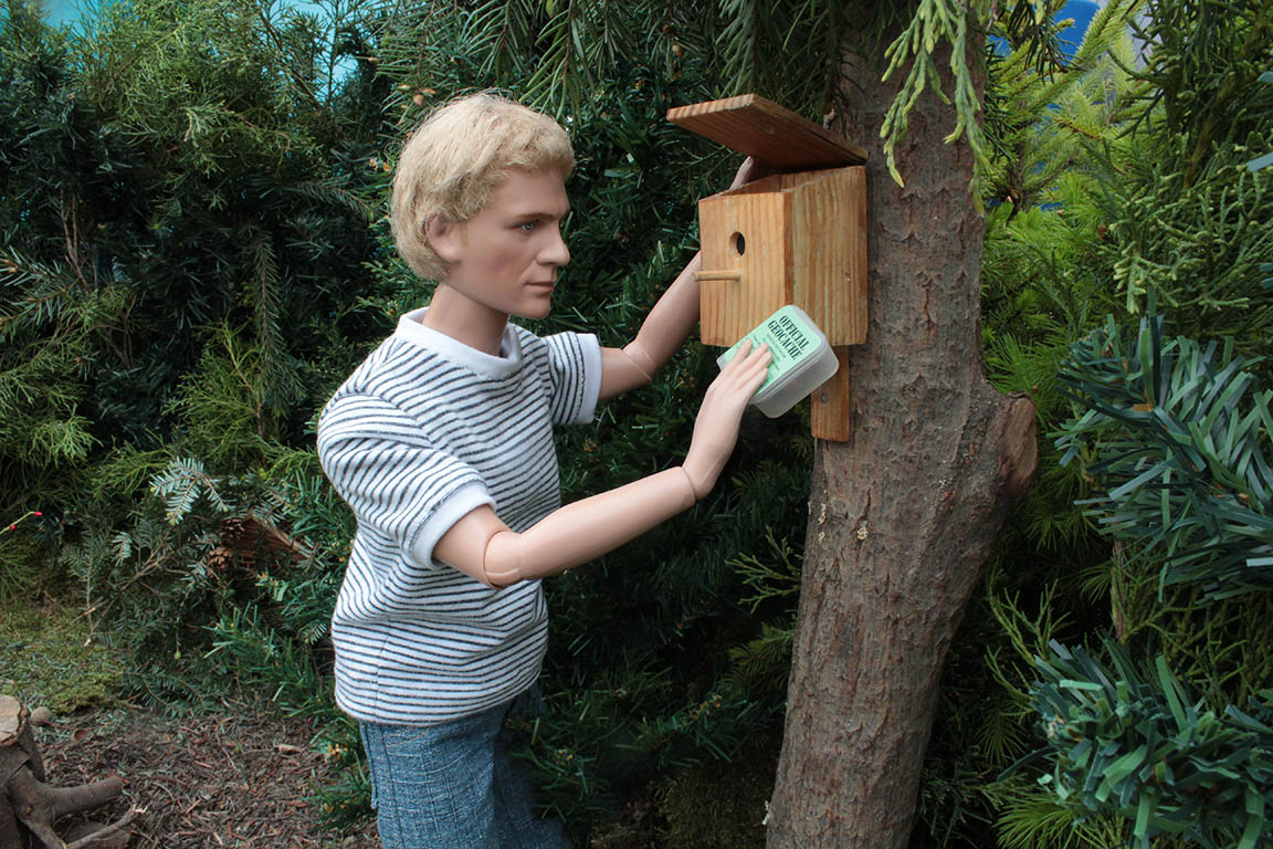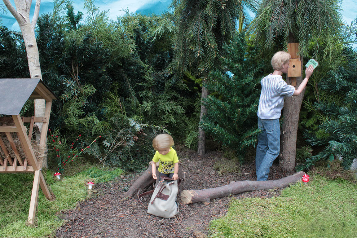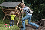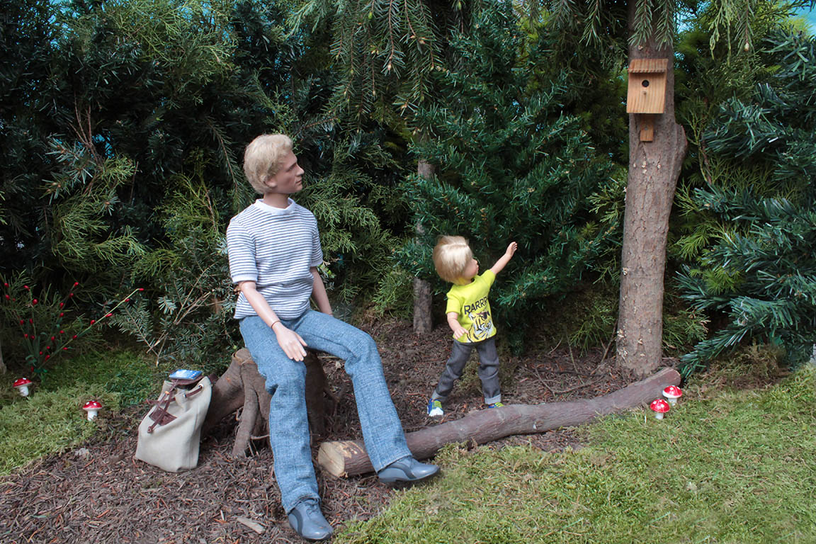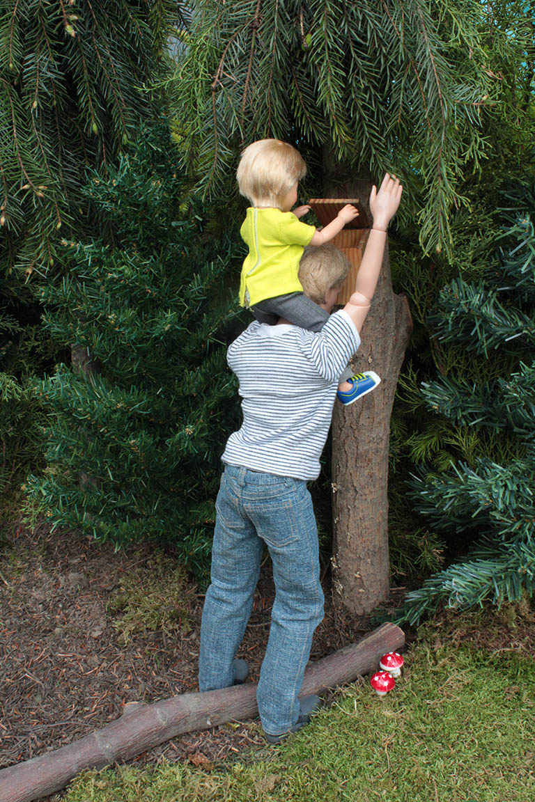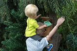 budku, kterou zahlédnul připevněnou na stromě. Při bližším prozkoumání tatínek