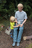 hledání kešky. Jeli kousek vlakem, prošli se hezkou krajinou a podle souřadnic