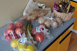 potraviny jako pečivo, rajčata, jablíčka nebo lahůdková cibulka.