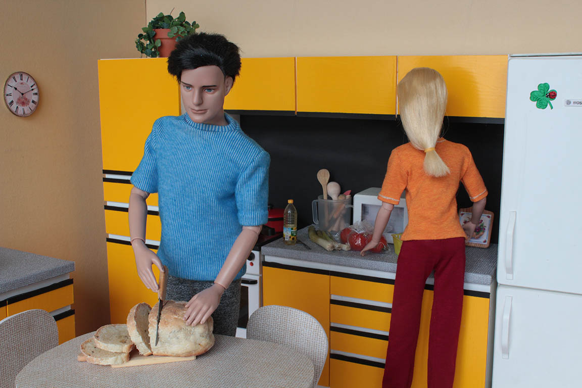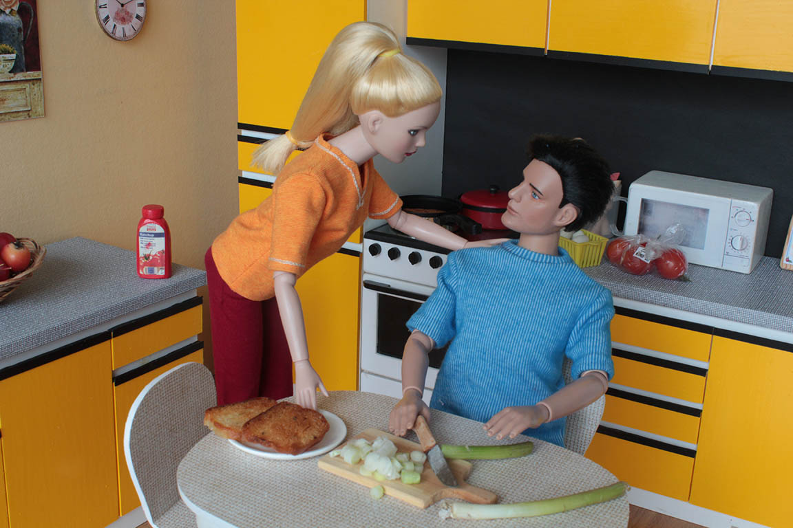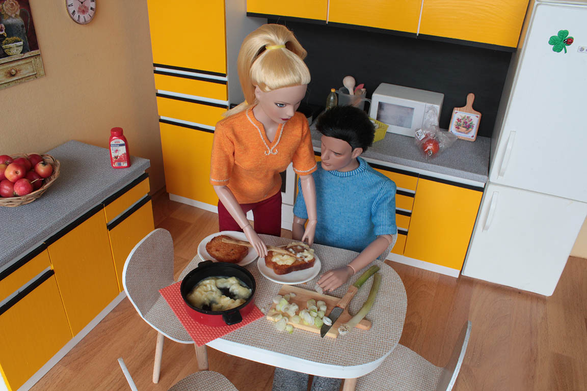 udělali topinky...dostal na ně obrovskou chuť. Převléknou se do domácího a