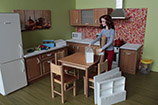 Kuchyň jsem postavila zase trochu jinak, vytiskla jsem nové obkladačky a