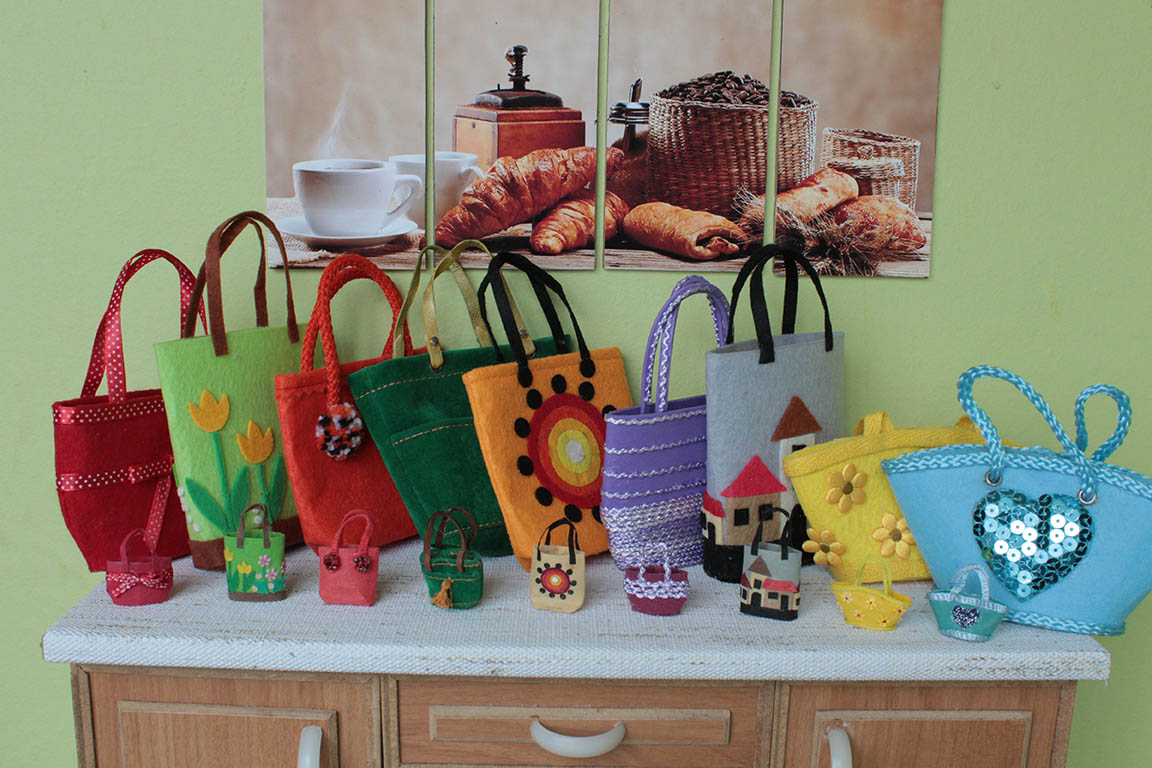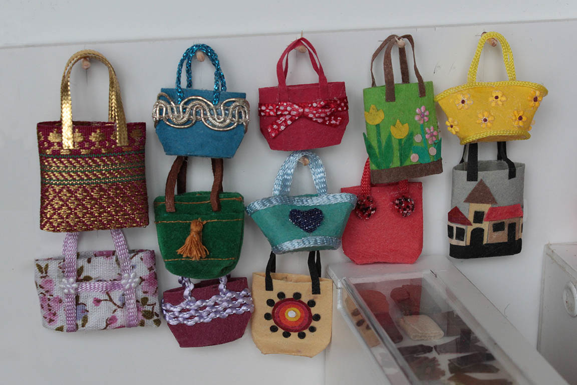 výstava" vyrobila Světlana Ježková miniaturní kabelky. A protože to byly