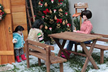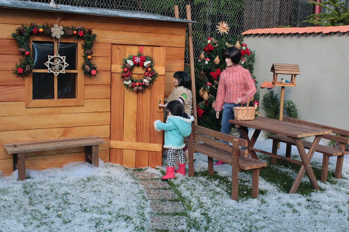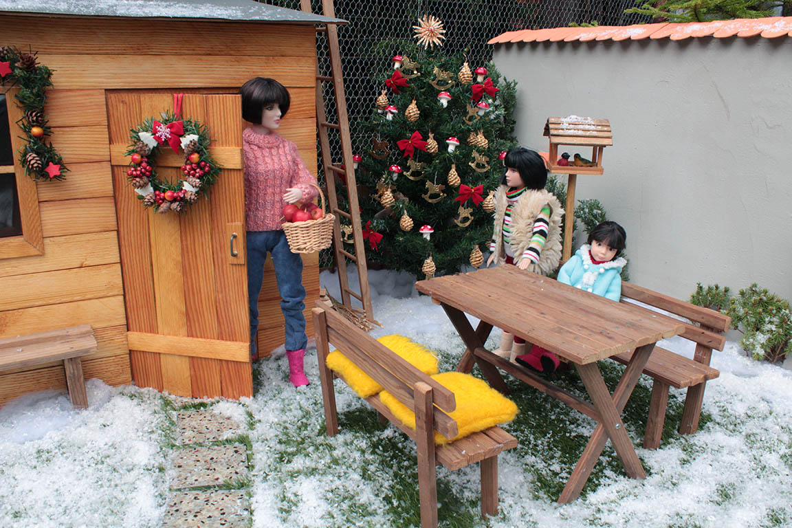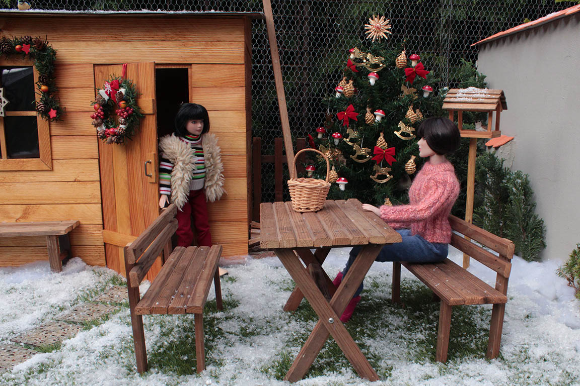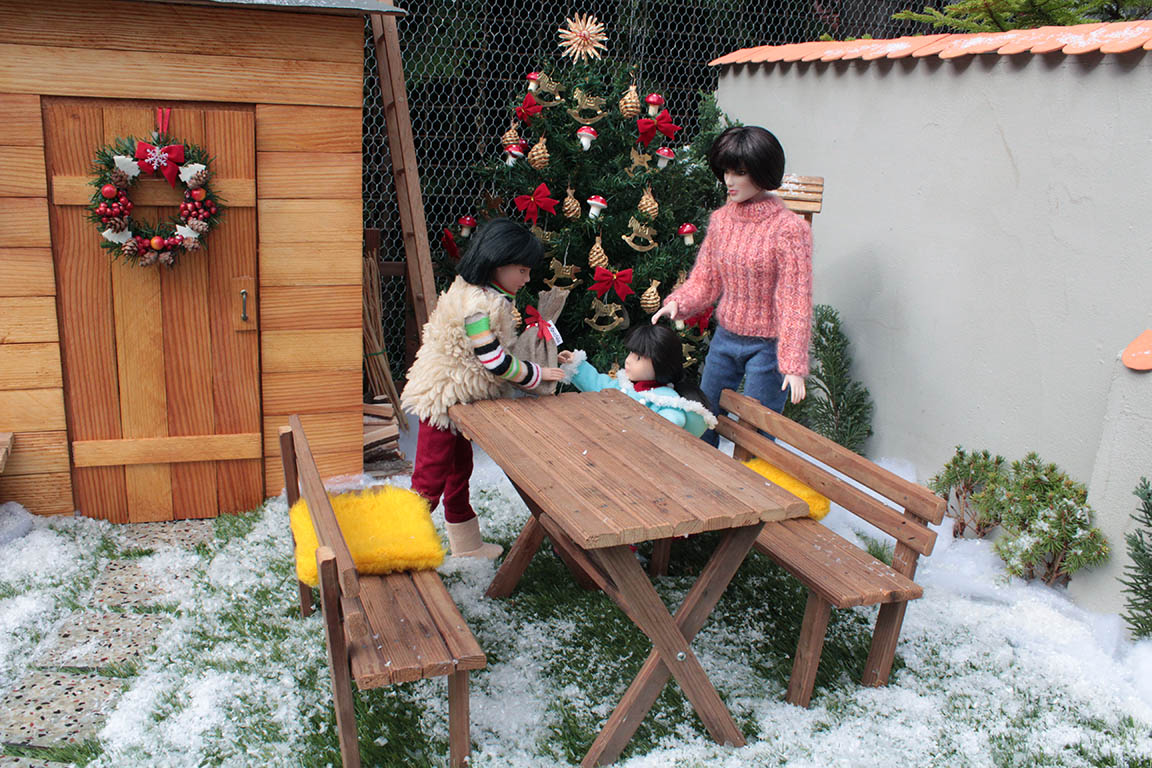domek, stůl a lavice´i krmítko pro ptáky už se objevily v předchozích