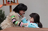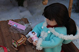 dívenky rozbalují. Julinka křičí nadšením nad malým miminkem s kolíbkou a Anetka