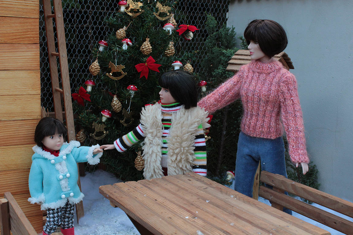 velká zima, maminka je vrací, aby si přes sebe vzaly něco teplejšího.