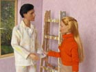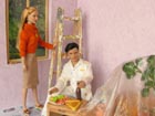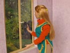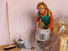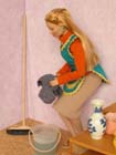 Sotva malíř odejde oblékne si Veronika zástěrku a pustí se do úklidu.