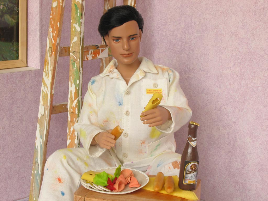 postříkla je skutečným Primalexem. Boty má Štěpán originál Tonner.