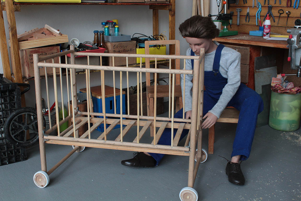 kolíků. Postýlka sloužila dětem do jednoho roku, které si rodiče snadno