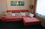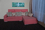 alespoň hodně podobný gauč, okno, závěsy, polštáře, obraz na zdi. Prohledala