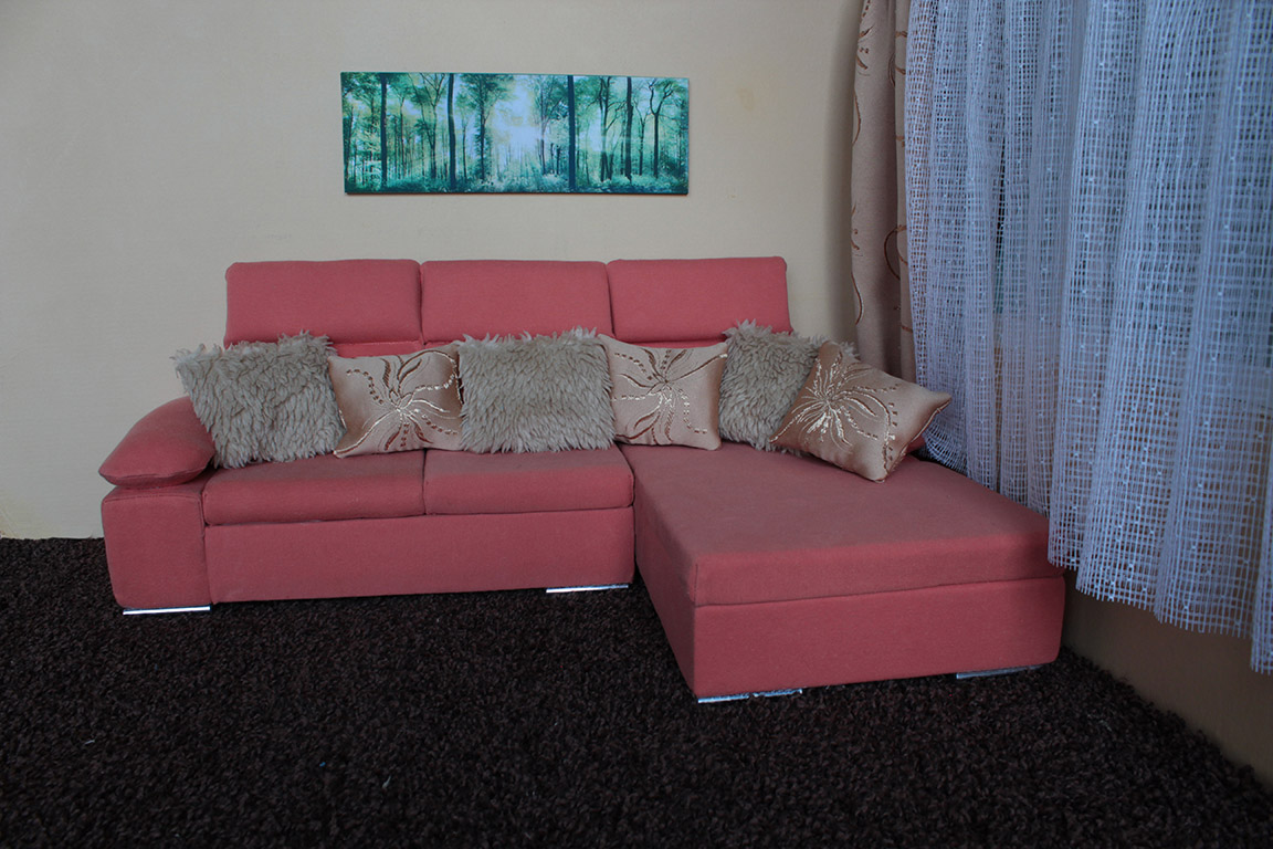 stejné látky jako v reálu, na chlupaté polštáře a také na dva čtvercové sedáky