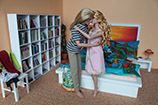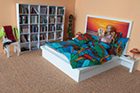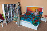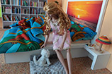 Měkoučký pelíšek umístil David před postel, jenže Jana si nakonec nechala malou