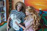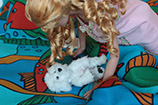 má pro Janu tajemný dárek v tašce. Jana opatrně vyndává tu bílou huňatou kouli s