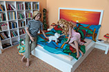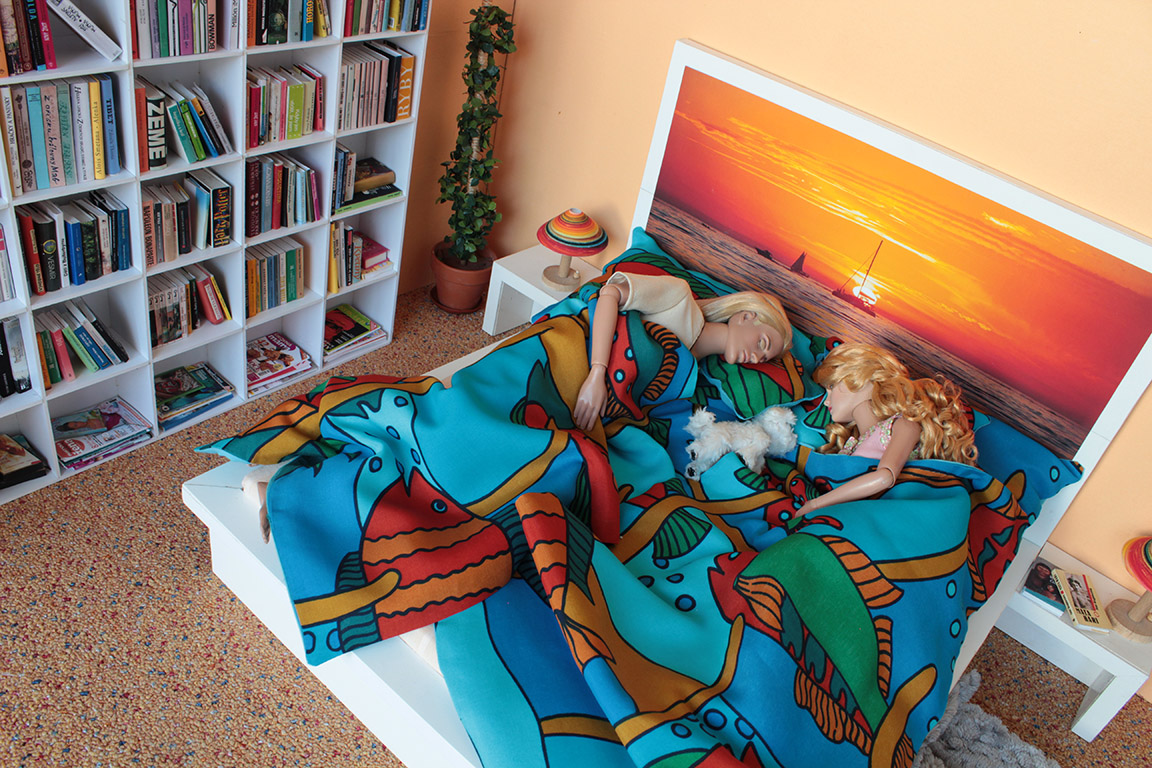 kvůli barevnému ladění a taky k rybímu povlečení. Využila jsem opět knihovnu, do