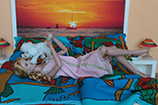 postele jsem si vytiskla obrázek se západem slunce u moře, který se mi hodil