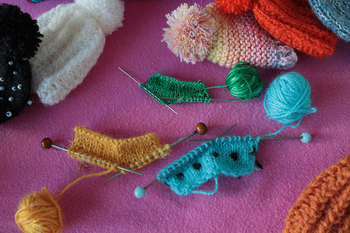 Nela přináší svá poslední dílka, celou sadu zimních čepic. Amálka je z nich
