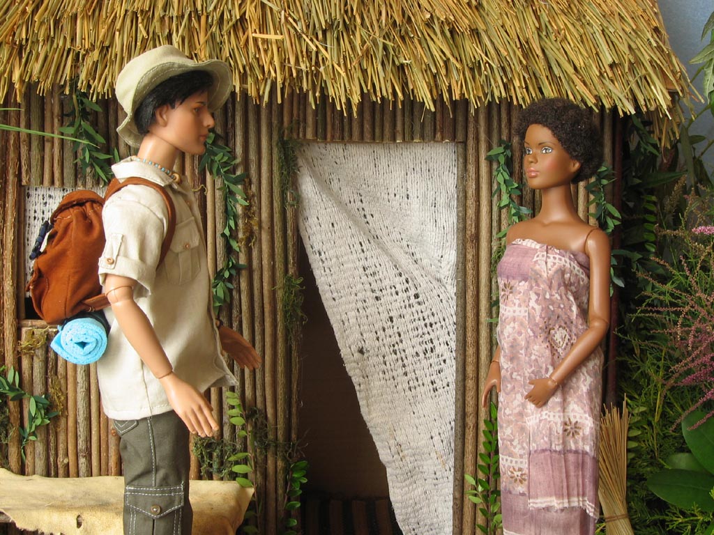 Madagaskar bez pokrývky hlavy. Kalhoty a boty jsou originál Tonner. Batoh je