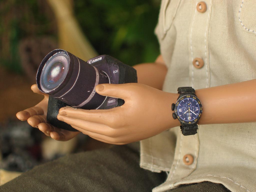 těla vhodný pruh látky. A tak jsem alespoň vyrobila fotoaparát s brašnou, hodinky a