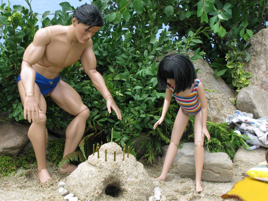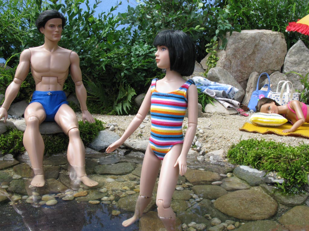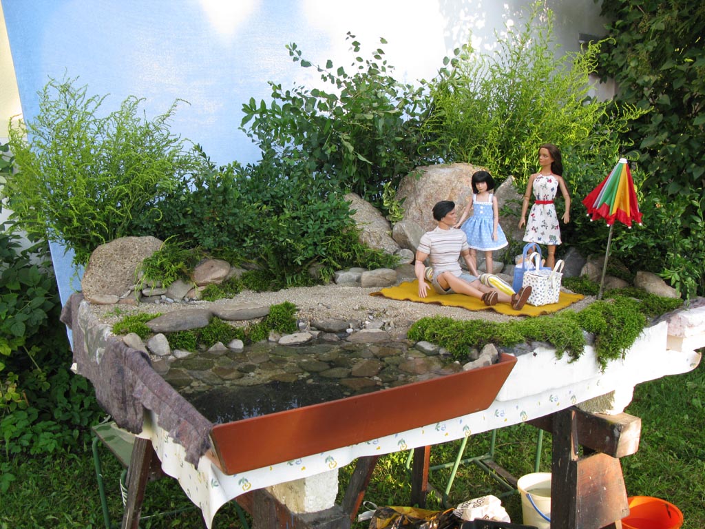 První "vodní scénu" jsem postavila venku. Den byl