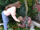 vysvobodit...jednou rukou se přidržuje větve, v druhé už, už svírá