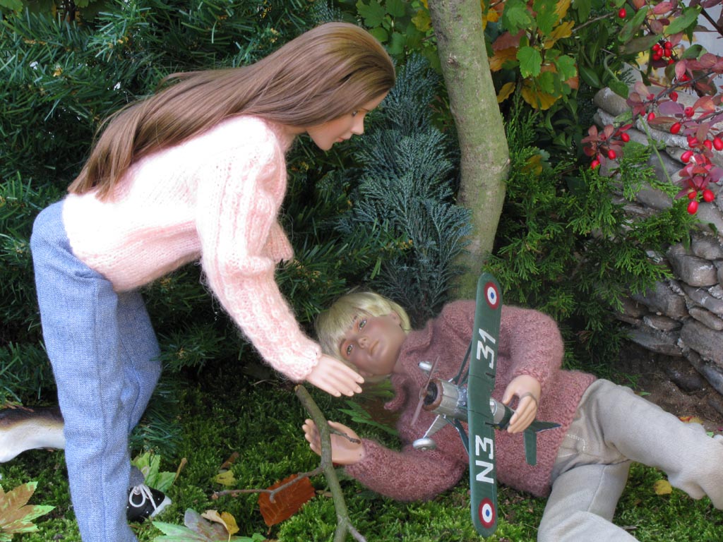letadlo...a najednou rup, větev praskla a Vojta leží na zádech pod stromem.