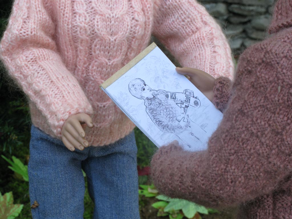 Hančin skicák a s netajeným potěšením si prohlíží pěknou kresbu... naražený bok
