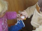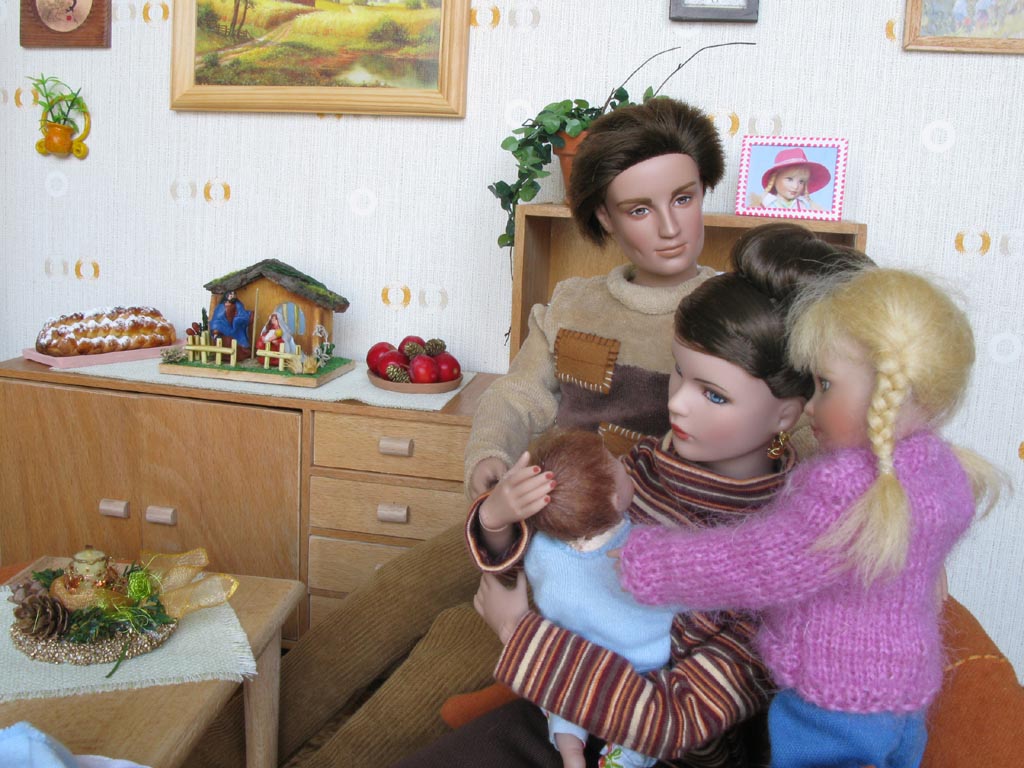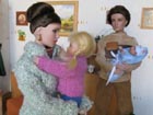 Kačenku konejší tatínek.Vzal malé Jezulátko z vystaveného betlému a půjčil