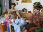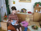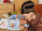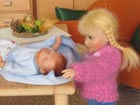 bratříčkovi. Maminka jí vysvětluje, že bráška si ještě neumí hrát tak jako ona,