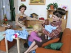 se spravedlivě podělily, já jsem ušila kalhotky, Máninka upletla malý svetřík,
