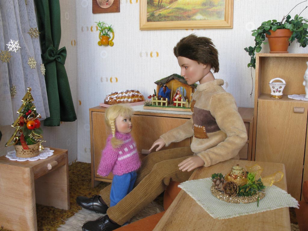 poslouchala "pohádku" o Ježíškovi, kterou jí tatínek vyprávěl. Nakonec opatrně