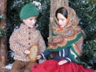 dyftýnu, hnědé kalhoty si "vypůjčil" od zahradníka, šála je ustřižená z jakési