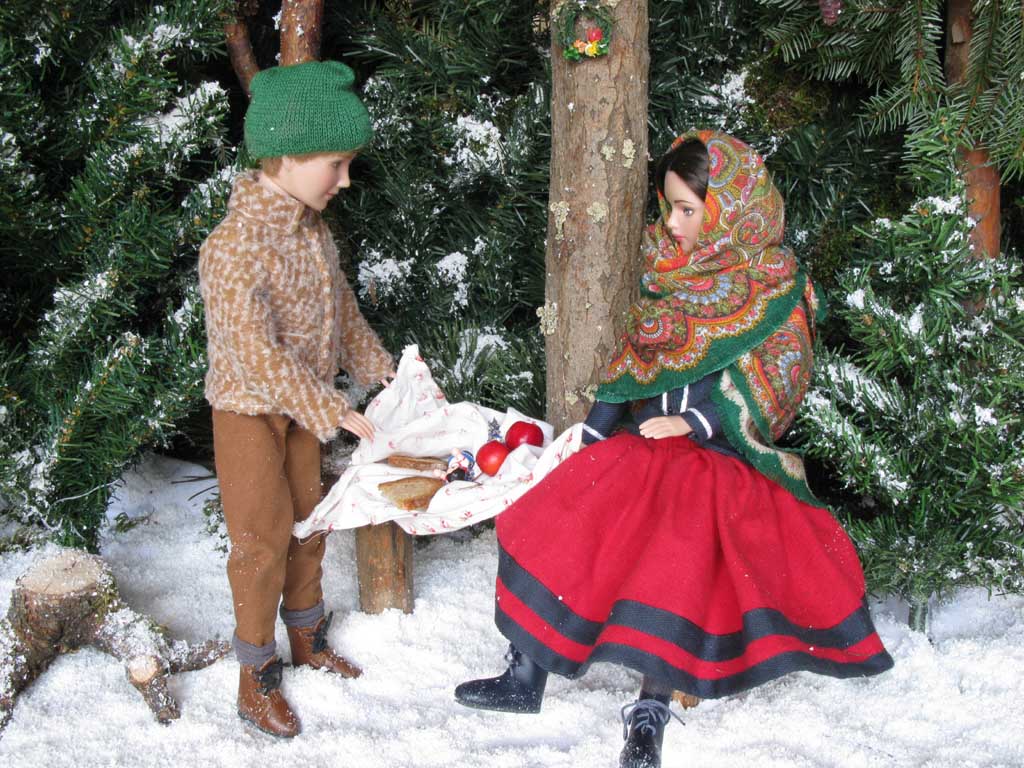 kožich a zabalí do něj zkřehlé děvčátko. Začalo sněžit. Terezka se uvelebí na