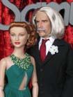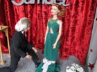 zdobené umělými krystalky, šperky jsou z větších matných korálků. Zlaté šaty