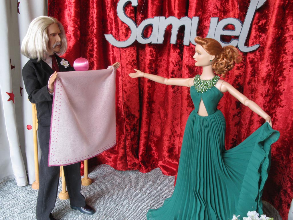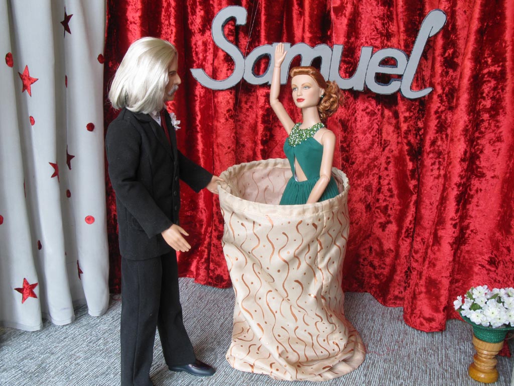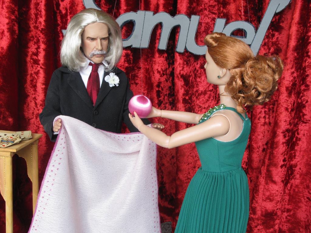 předvádí Samuel kouzlo s šátkem a magickou koulí, která poslušně plní jeho
