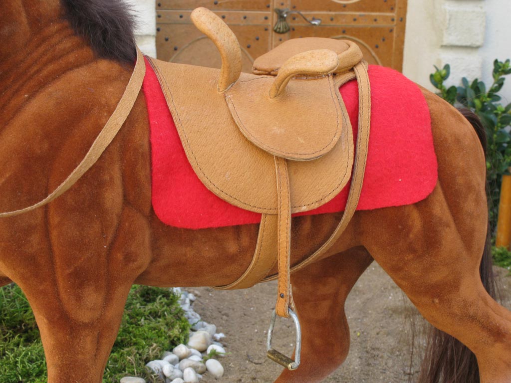 Dámské sedlo pro Jasněnku je rovněž kožené, vyrobila jsem ho na míru pro 16" panenku. Kůň