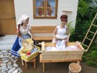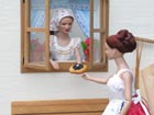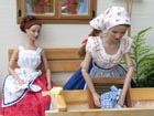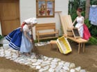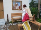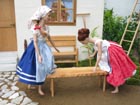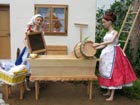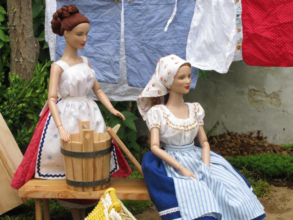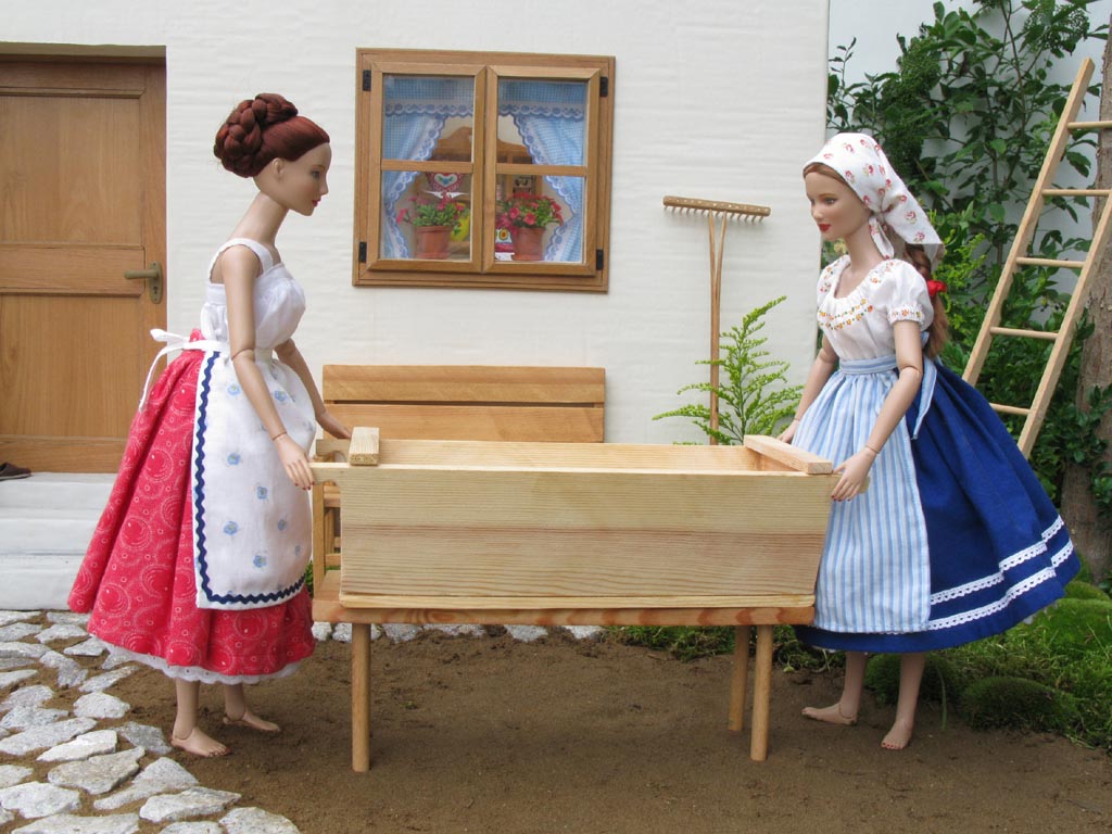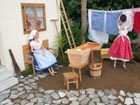 Nejprve dívky vynesly dřevěnou lavici, na kterou postavily necky. Ty pak