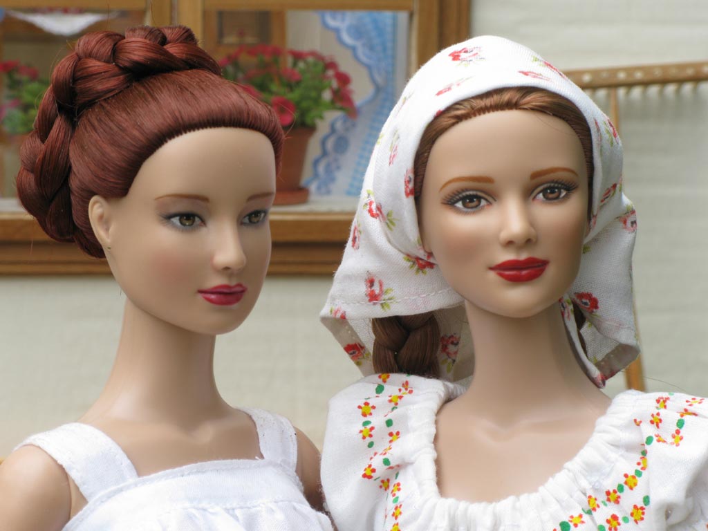 učesala cop pevně smotaný na temeni. Bohatě nabíranou sukni jsem ušila z