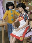 oblékání panenek obstarala Máninka. Já jsem akorát namalovala a ušila zástěru