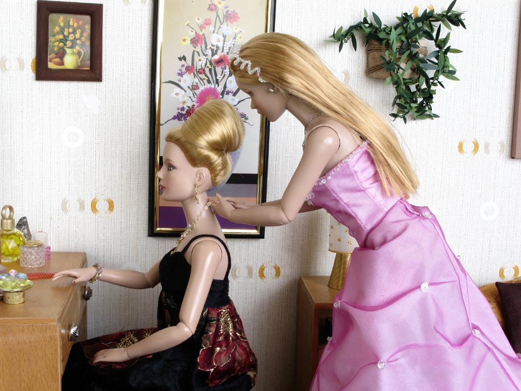 jsou obě v gala, zkouší ještě na poslední chvíli alespoň pár tanečních kroků.