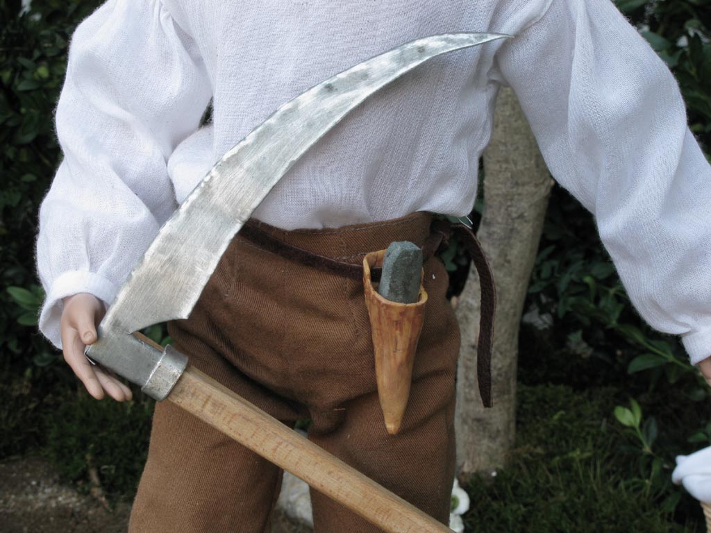 koženého řemínku. Je v něm vložený kousek skutečného brousku. Samotnou kosu