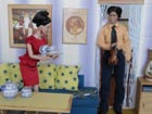 ustřižené "provázkové " záclony. Základ sedací soupravy je z