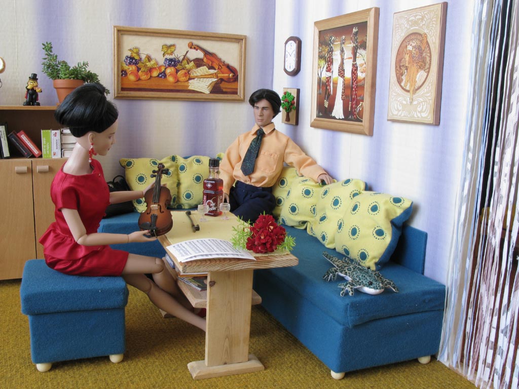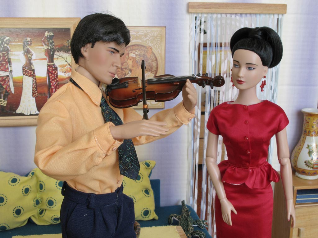 Viktor přinesl housle a zahrál krásnou skladbu, kterou však Aiko neznala. Pak