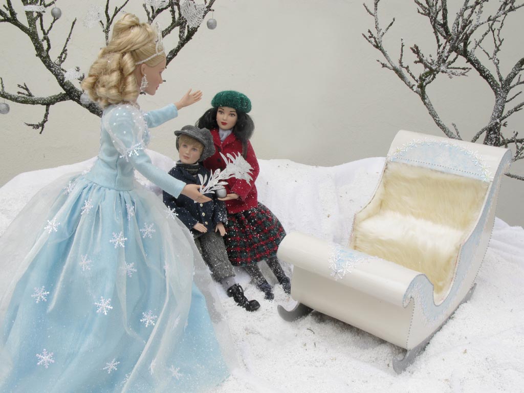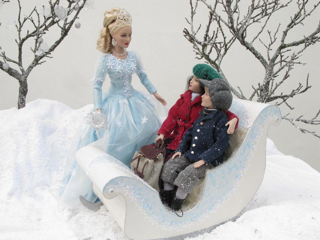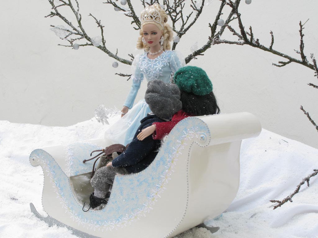 cestu domů zvládnou děti v kouzelných sáňkách, které královna přivolá mávnutím