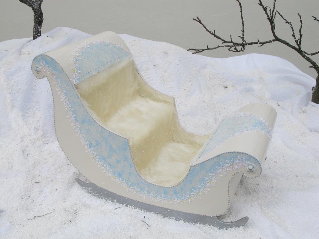 Sáně už byly pracnější. Kostru tvoří dvě sololitové bočnice spojené v předním a