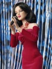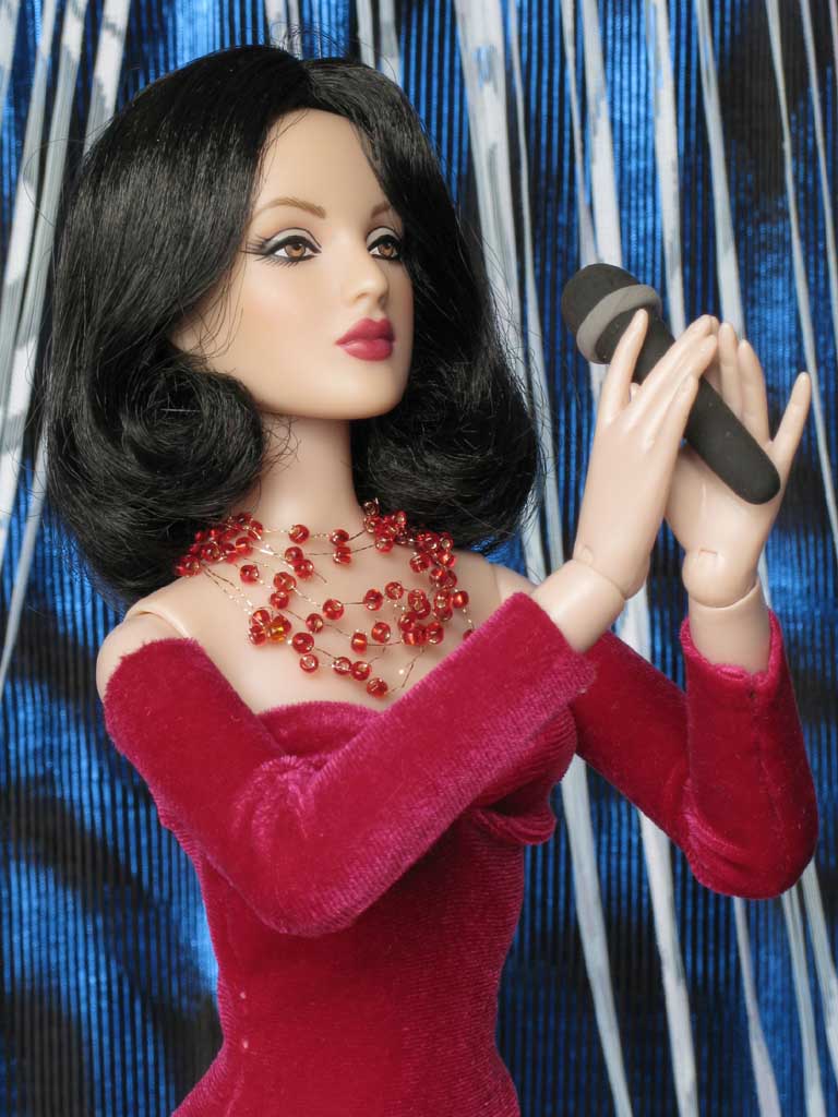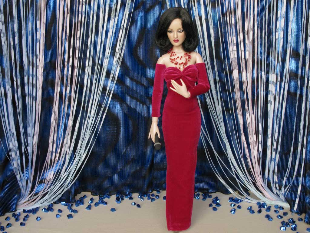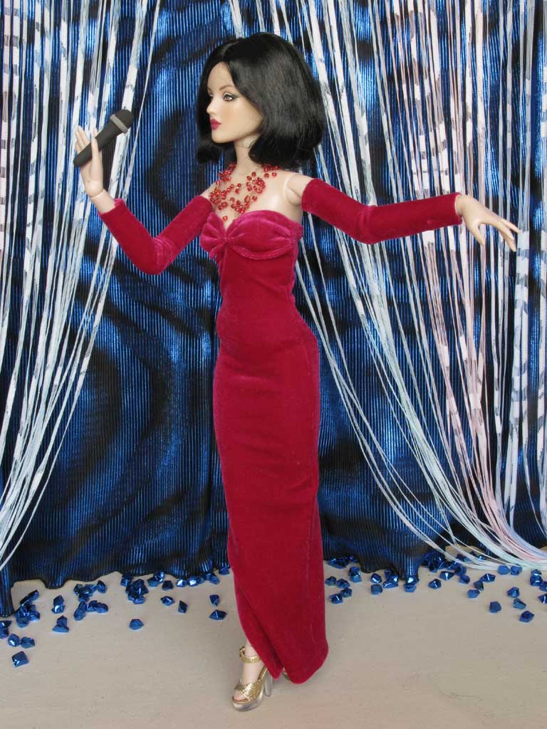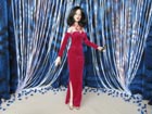 Jako zpěvačka se Valerie představuje v dlouhých červených šatech ze strečového